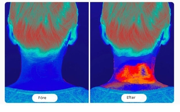Den konstanta temperaturen på 42 °C är noggrant utvald för att ge optimal och trygg värme för nacken. Den avancerade, inbyggda sensorn reglerar temperaturen exakt och förhindrar överhettning. Känslan kan liknas vid en varm handduk runt halsen, där värmen tränger in lager för lager och hjälper musklerna att slappna av.